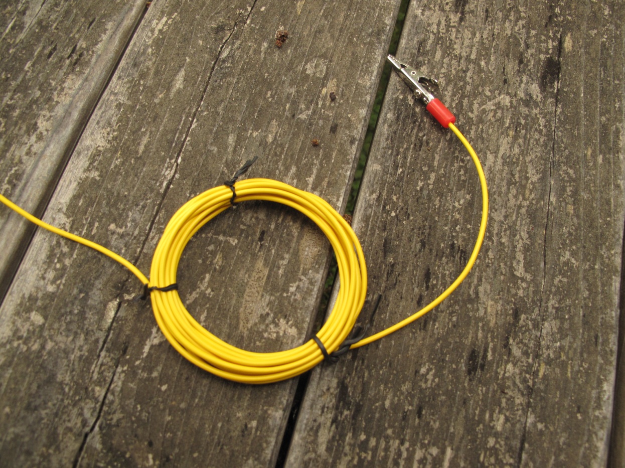 The other end (not shown) of the coil will go to the ground stake so leave enough wire. The ground stake can be driven into a convenient and safe place nearby.
