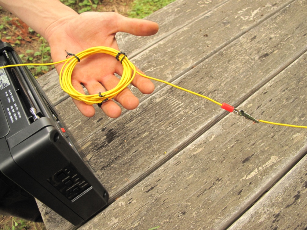 - Form a three inch coil with seven turns. Secure into a round shape with ties or tape. The attached alligator clip shown below will be connected to no less than 60' of your antenna wire. Generally the longer the antenna wire the better so if you have a 100' antenna wire, that's good.